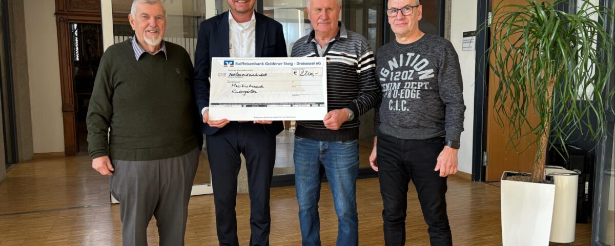 Der ehemalige Vorsitzende, sein Stellvertreter und der Kassier übergaben das verbleibende Vereinsvermögen von rund 2.200 Euro an Bürgermeister Heinz Pollak, der die Mittel für Musikinstrumente und Kindergärten zur Verfügung stellen wird – ganz im Sinne der Gemeinschaft.