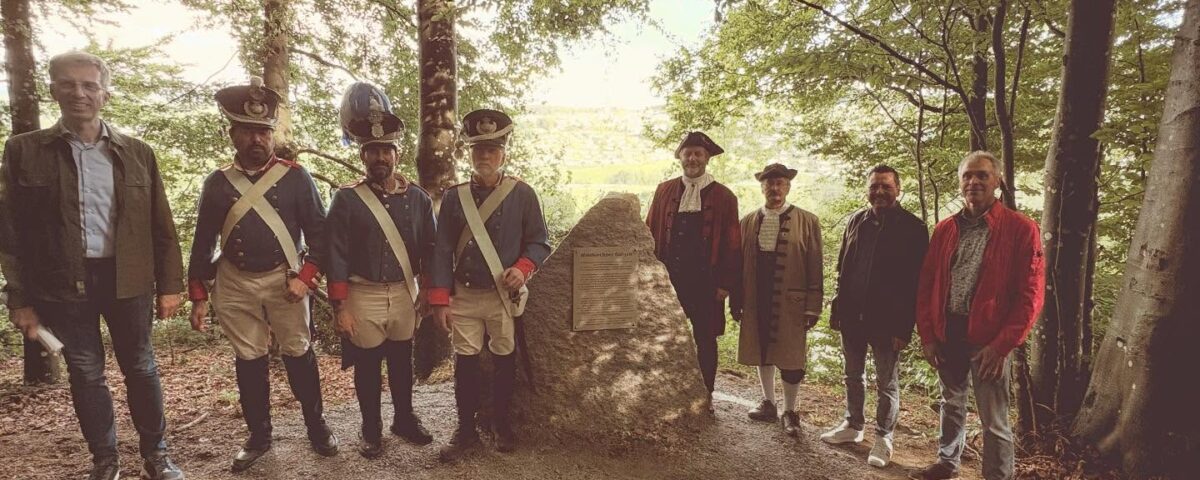 Dank der Initiative und der intensiven Nachforschungen von Dr. Bernd Becker konnte der Stein vom Bauhof errichtet werden.