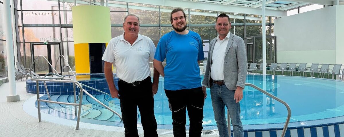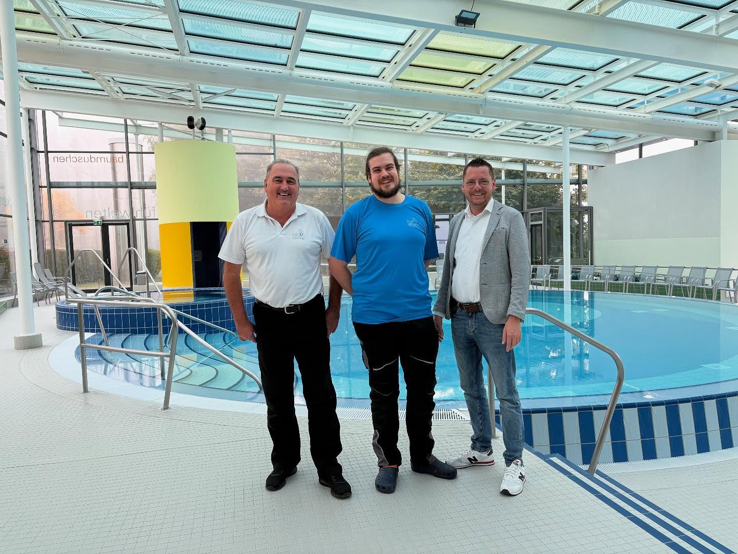 Bürgermeister Heinz Pollak und Badepark-Leiter Kurt Auer hießen den neuen Kollegen herzlich willkommen und wünschen ihm einen erfolgreichen Start ins Berufsleben!